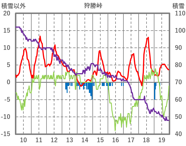 | 日 | 時 | 気温 | 降水 | 風向/風速 | 日照 | 積雪 | 降雪 |