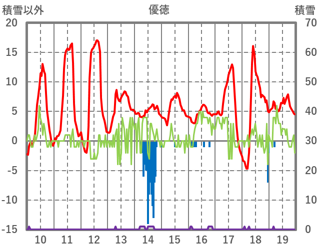 | 日 | 時 | 気温 | 降水 | 風向/風速 | 日照 | 積雪 | 降雪 |