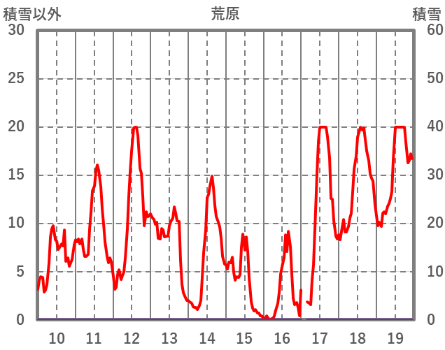 | 日 | 時 | 気温 | 降水 | 風向/風速 | 日照 | 積雪 | 降雪 |