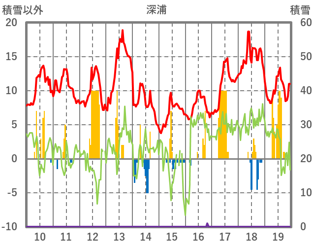 | 日 | 時 | 気温 | 降水 | 風向/風速 | 日照 | 積雪 | 降雪 |