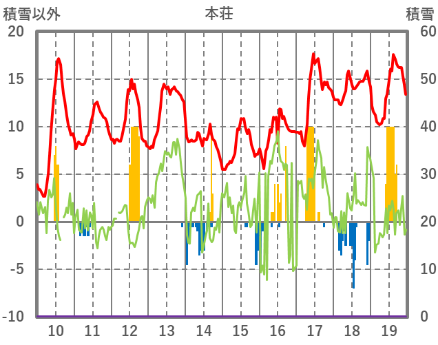| 日 | 時 | 気温 | 降水 | 風向/風速 | 日照 | 積雪 | 降雪 |