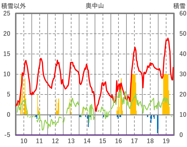 | 日 | 時 | 気温 | 降水 | 風向/風速 | 日照 | 積雪 | 降雪 |
