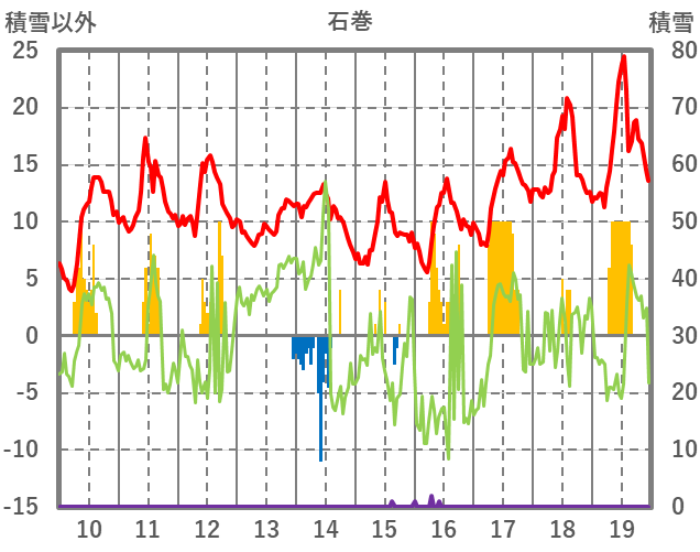 | 日 | 時 | 気温 | 降水 | 風向/風速 | 日照 | 積雪 | 降雪 |