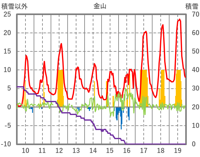 | 日 | 時 | 気温 | 降水 | 風向/風速 | 日照 | 積雪 | 降雪 |