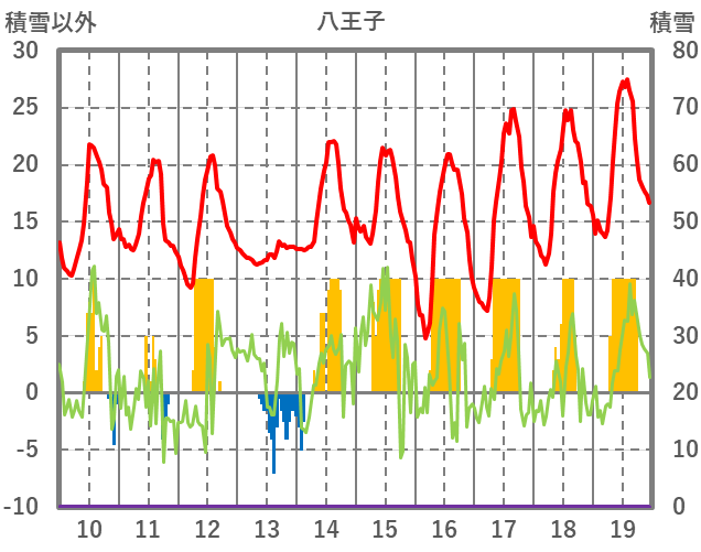 | 日 | 時 | 気温 | 降水 | 風向/風速 | 日照 | 積雪 | 降雪 |