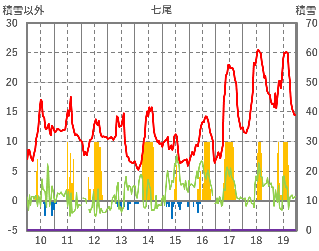 | 日 | 時 | 気温 | 降水 | 風向/風速 | 日照 | 積雪 | 降雪 |