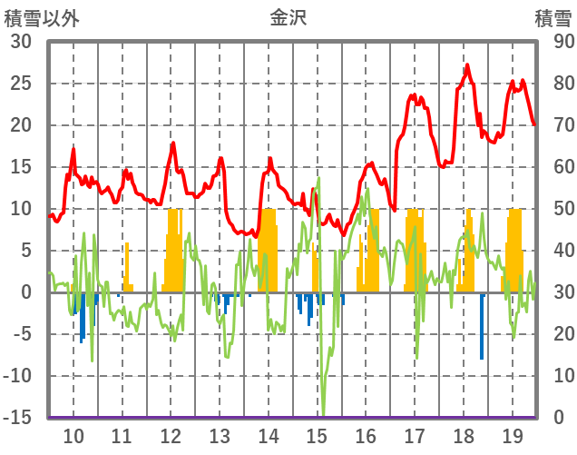 | 日 | 時 | 気温 | 降水 | 風向/風速 | 日照 | 積雪 | 降雪 |