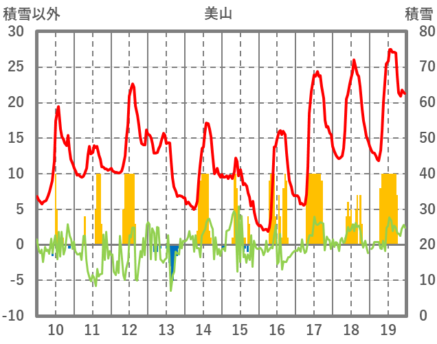 | 日 | 時 | 気温 | 降水 | 風向/風速 | 日照 | 積雪 | 降雪 |