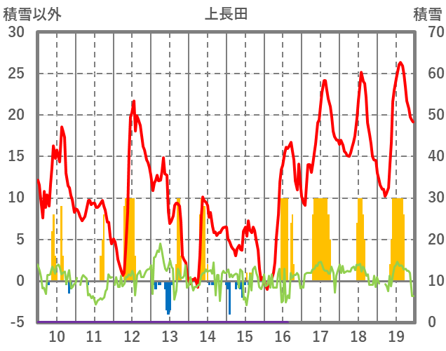 | 日 | 時 | 気温 | 降水 | 風向/風速 | 日照 | 積雪 | 降雪 |