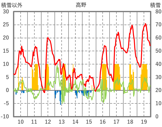 | 日 | 時 | 気温 | 降水 | 風向/風速 | 日照 | 積雪 | 降雪 |