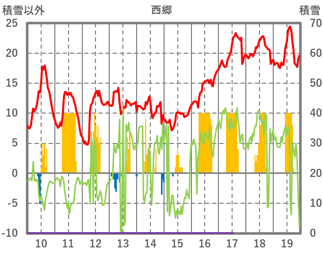 | 日 | 時 | 気温 | 降水 | 風向/風速 | 日照 | 積雪 | 降雪 |
