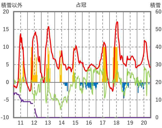 | 日 | 時 | 気温 | 降水 | 風向/風速 | 日照 | 積雪 | 降雪 |