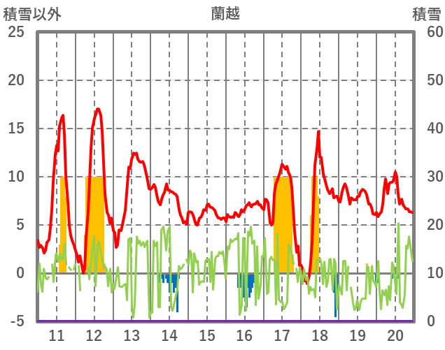 | 日 | 時 | 気温 | 降水 | 風向/風速 | 日照 | 積雪 | 降雪 |