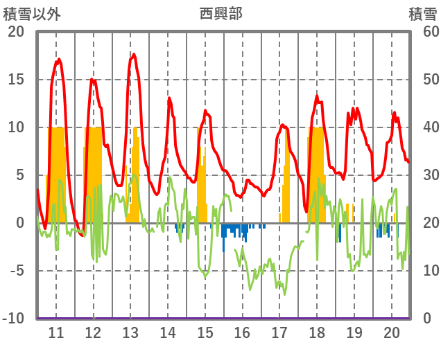 | 日 | 時 | 気温 | 降水 | 風向/風速 | 日照 | 積雪 | 降雪 |