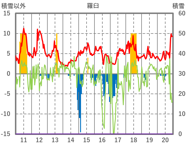 | 日 | 時 | 気温 | 降水 | 風向/風速 | 日照 | 積雪 | 降雪 |
