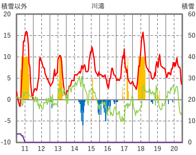 | 日 | 時 | 気温 | 降水 | 風向/風速 | 日照 | 積雪 | 降雪 |