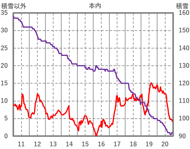 | 日 | 時 | 気温 | 降水 | 風向/風速 | 日照 | 積雪 | 降雪 |