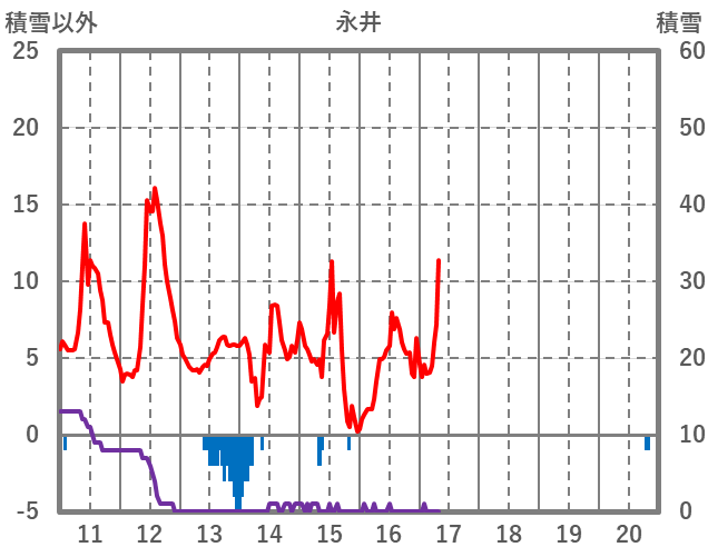 | 日 | 時 | 気温 | 降水 | 風向/風速 | 日照 | 積雪 | 降雪 |