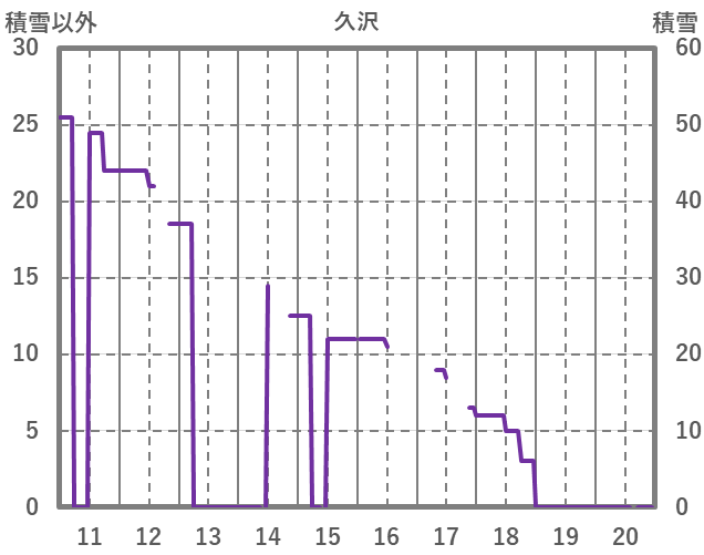 | 日 | 時 | 気温 | 降水 | 風向/風速 | 日照 | 積雪 | 降雪 |