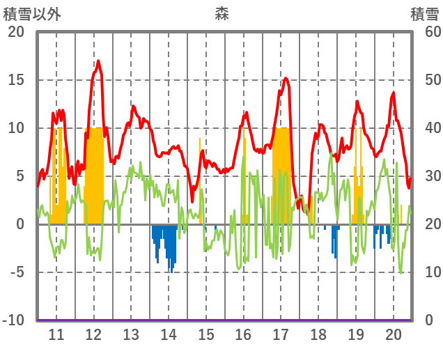 | 日 | 時 | 気温 | 降水 | 風向/風速 | 日照 | 積雪 | 降雪 |