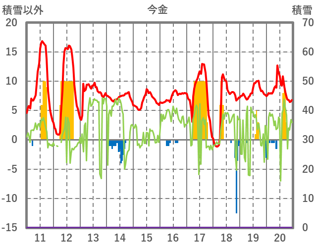 | 日 | 時 | 気温 | 降水 | 風向/風速 | 日照 | 積雪 | 降雪 |