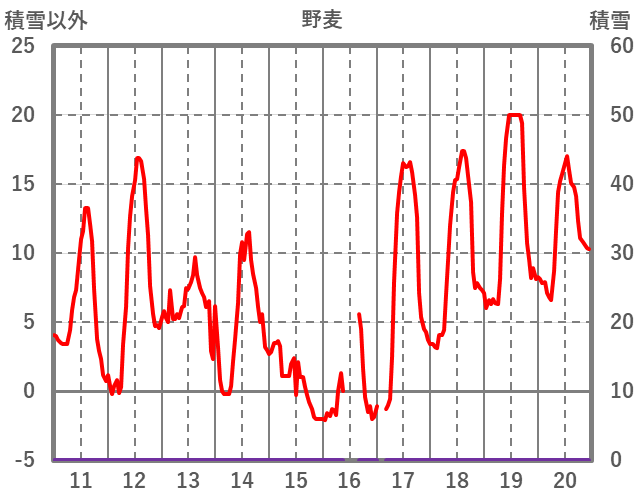| 日 | 時 | 気温 | 降水 | 風向/風速 | 日照 | 積雪 | 降雪 |