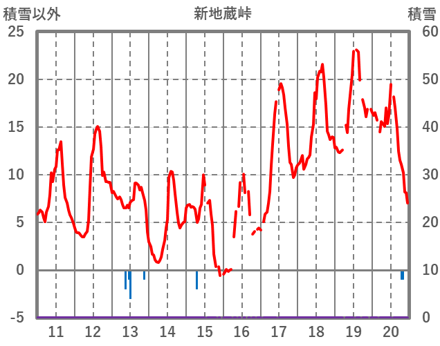 | 日 | 時 | 気温 | 降水 | 風向/風速 | 日照 | 積雪 | 降雪 |
