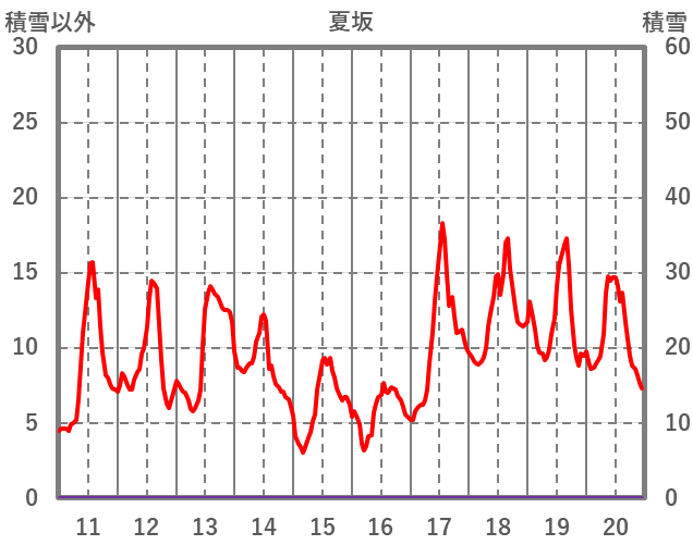 | 日 | 時 | 気温 | 降水 | 風向/風速 | 日照 | 積雪 | 降雪 |