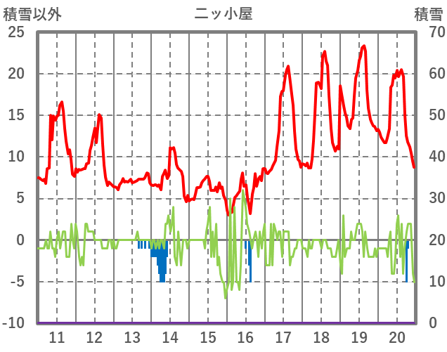| 日 | 時 | 気温 | 降水 | 風向/風速 | 日照 | 積雪 | 降雪 |