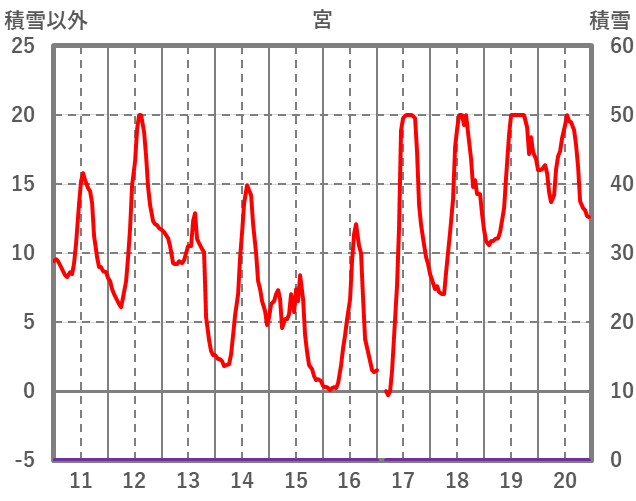 | 日 | 時 | 気温 | 降水 | 風向/風速 | 日照 | 積雪 | 降雪 |