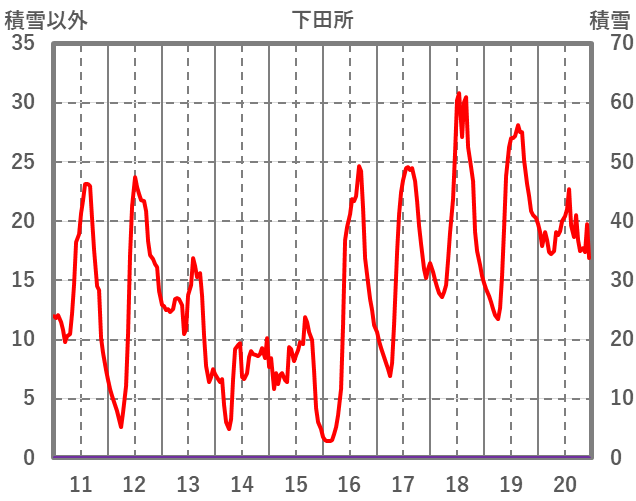 | 日 | 時 | 気温 | 降水 | 風向/風速 | 日照 | 積雪 | 降雪 |