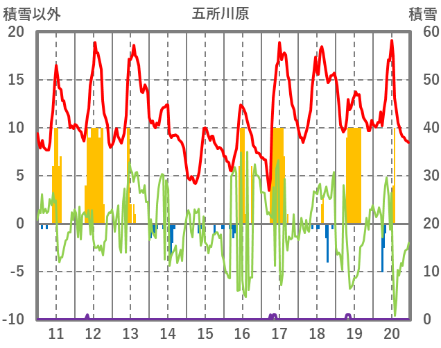 | 日 | 時 | 気温 | 降水 | 風向/風速 | 日照 | 積雪 | 降雪 |