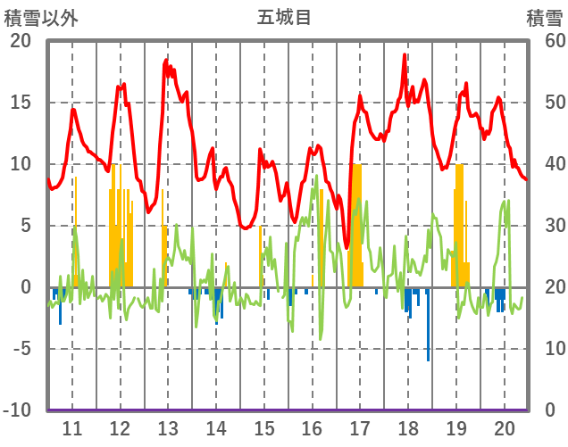 | 日 | 時 | 気温 | 降水 | 風向/風速 | 日照 | 積雪 | 降雪 |