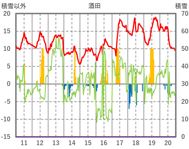 | 日 | 時 | 気温 | 降水 | 風向/風速 | 日照 | 積雪 | 降雪 |