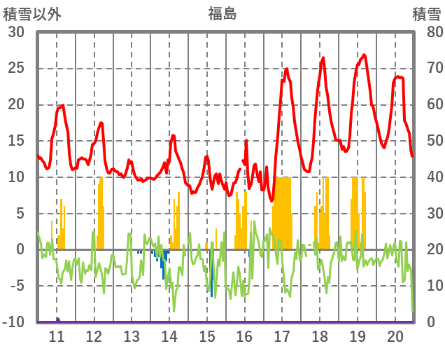 | 日 | 時 | 気温 | 降水 | 風向/風速 | 日照 | 積雪 | 降雪 |