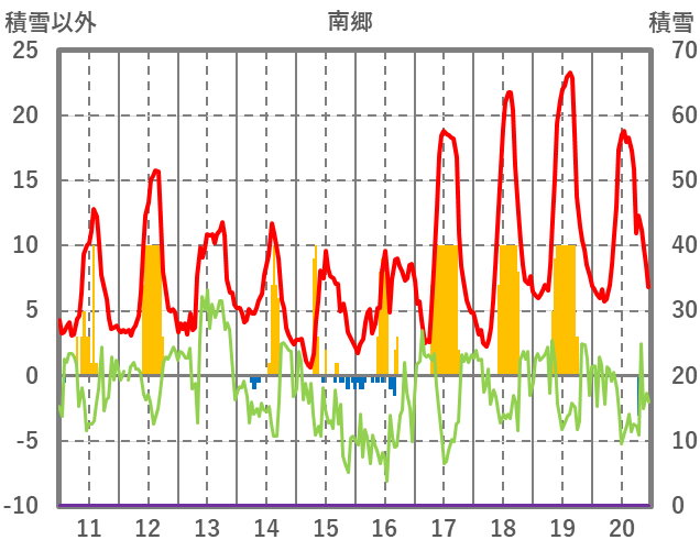| 日 | 時 | 気温 | 降水 | 風向/風速 | 日照 | 積雪 | 降雪 |