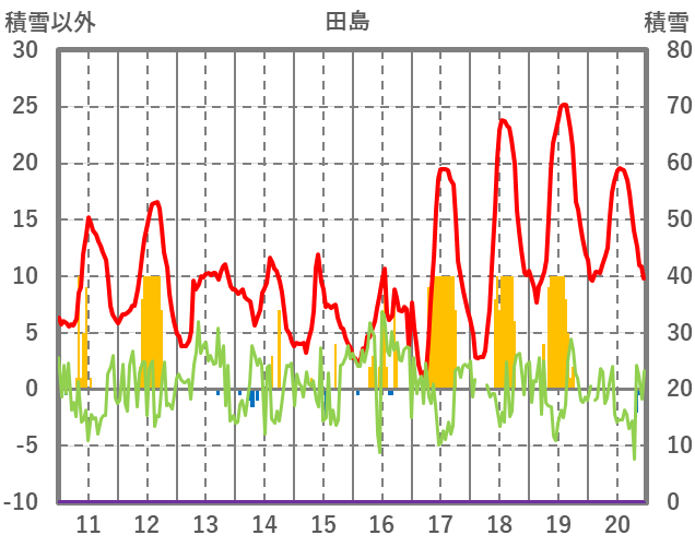 | 日 | 時 | 気温 | 降水 | 風向/風速 | 日照 | 積雪 | 降雪 |