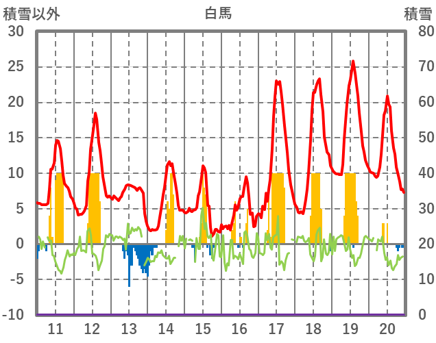 | 日 | 時 | 気温 | 降水 | 風向/風速 | 日照 | 積雪 | 降雪 |
