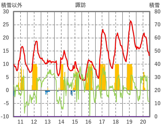 | 日 | 時 | 気温 | 降水 | 風向/風速 | 日照 | 積雪 | 降雪 |