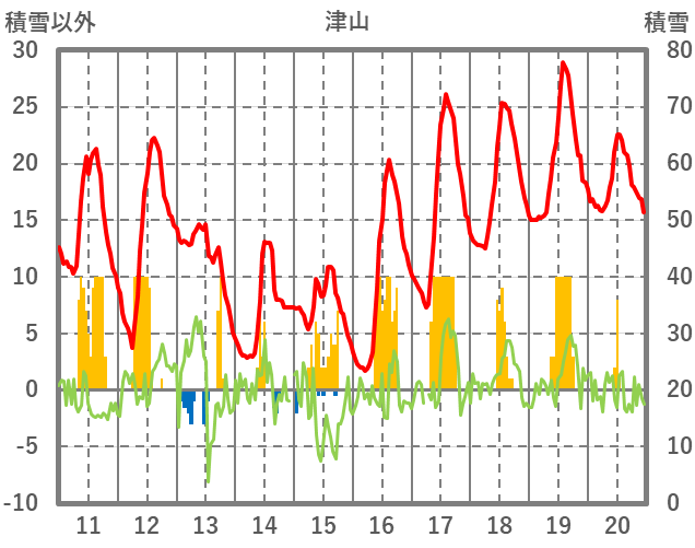 | 日 | 時 | 気温 | 降水 | 風向/風速 | 日照 | 積雪 | 降雪 |