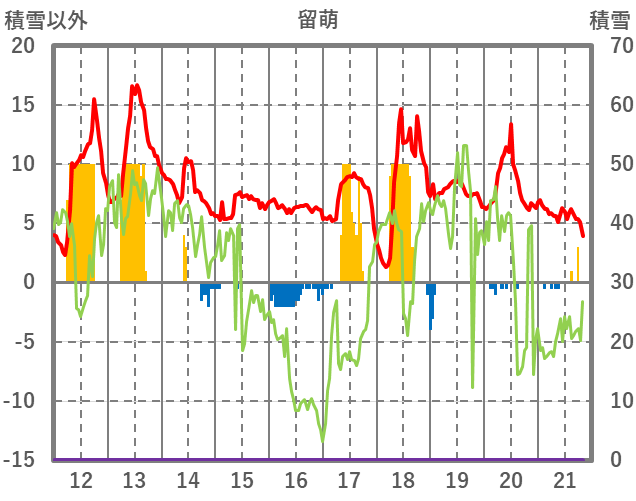 | 日 | 時 | 気温 | 降水 | 風向/風速 | 日照 | 積雪 | 降雪 |