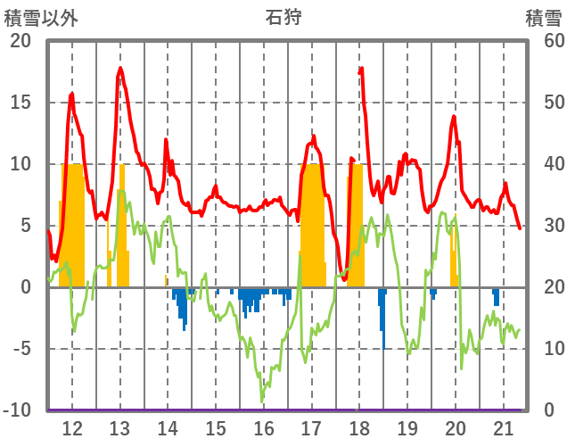 | 日 | 時 | 気温 | 降水 | 風向/風速 | 日照 | 積雪 | 降雪 |