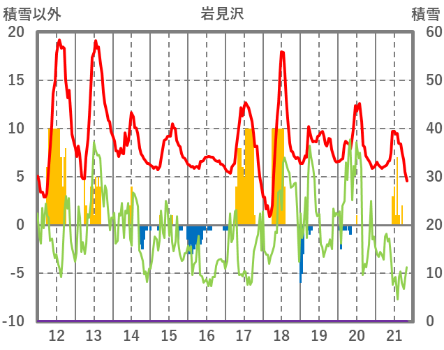 | 日 | 時 | 気温 | 降水 | 風向/風速 | 日照 | 積雪 | 降雪 |