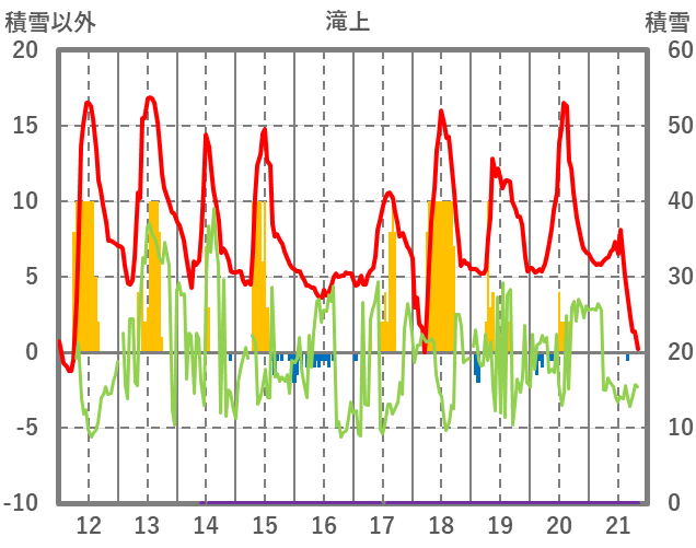 | 日 | 時 | 気温 | 降水 | 風向/風速 | 日照 | 積雪 | 降雪 |
