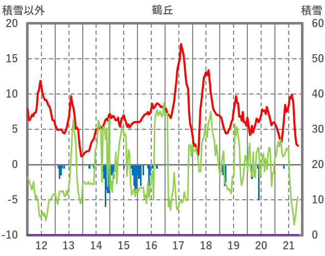 | 日 | 時 | 気温 | 降水 | 風向/風速 | 日照 | 積雪 | 降雪 |
