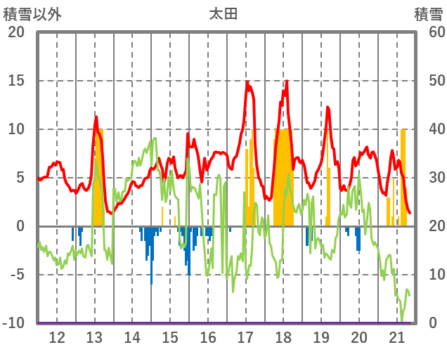 | 日 | 時 | 気温 | 降水 | 風向/風速 | 日照 | 積雪 | 降雪 |