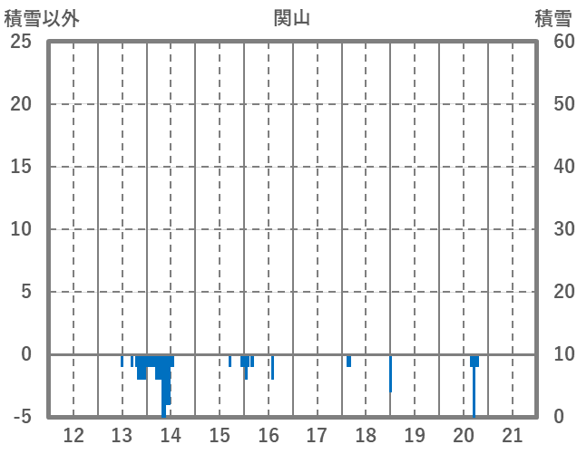 | 日 | 時 | 気温 | 降水 | 風向/風速 | 日照 | 積雪 | 降雪 |