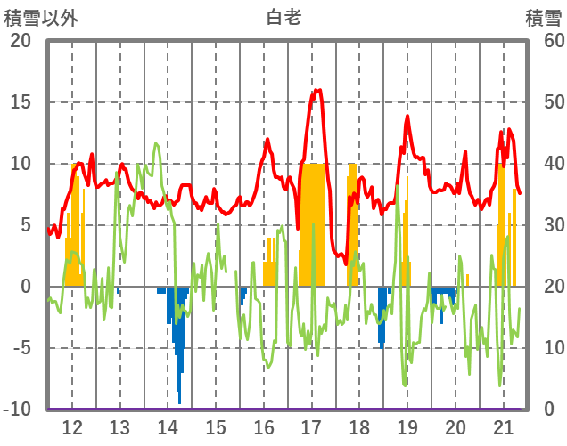 | 日 | 時 | 気温 | 降水 | 風向/風速 | 日照 | 積雪 | 降雪 |