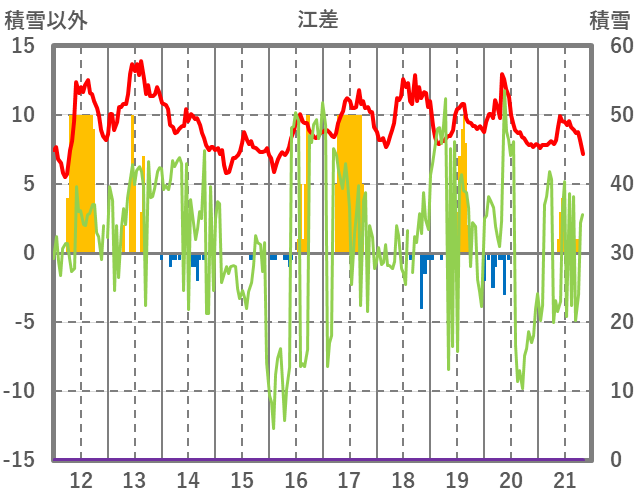 | 日 | 時 | 気温 | 降水 | 風向/風速 | 日照 | 積雪 | 降雪 |
