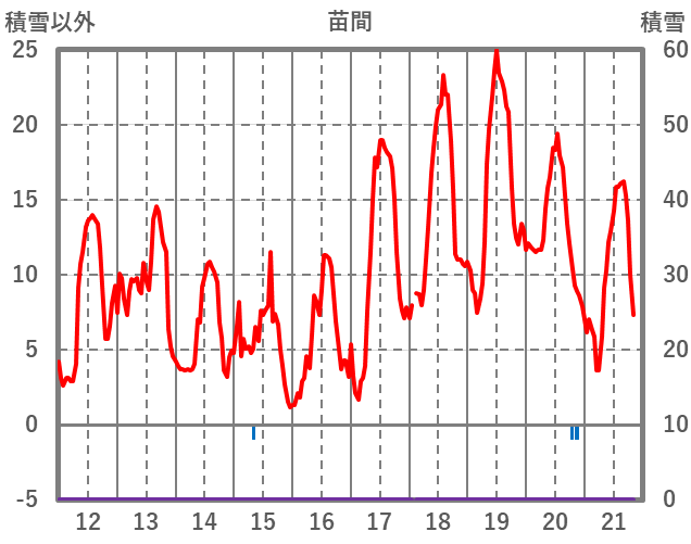 | 日 | 時 | 気温 | 降水 | 風向/風速 | 日照 | 積雪 | 降雪 |